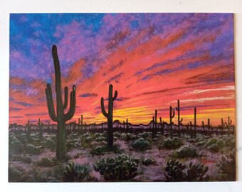 Desert Sunset Acrylic Painting Desert Cactus Saguaro Art Etsy